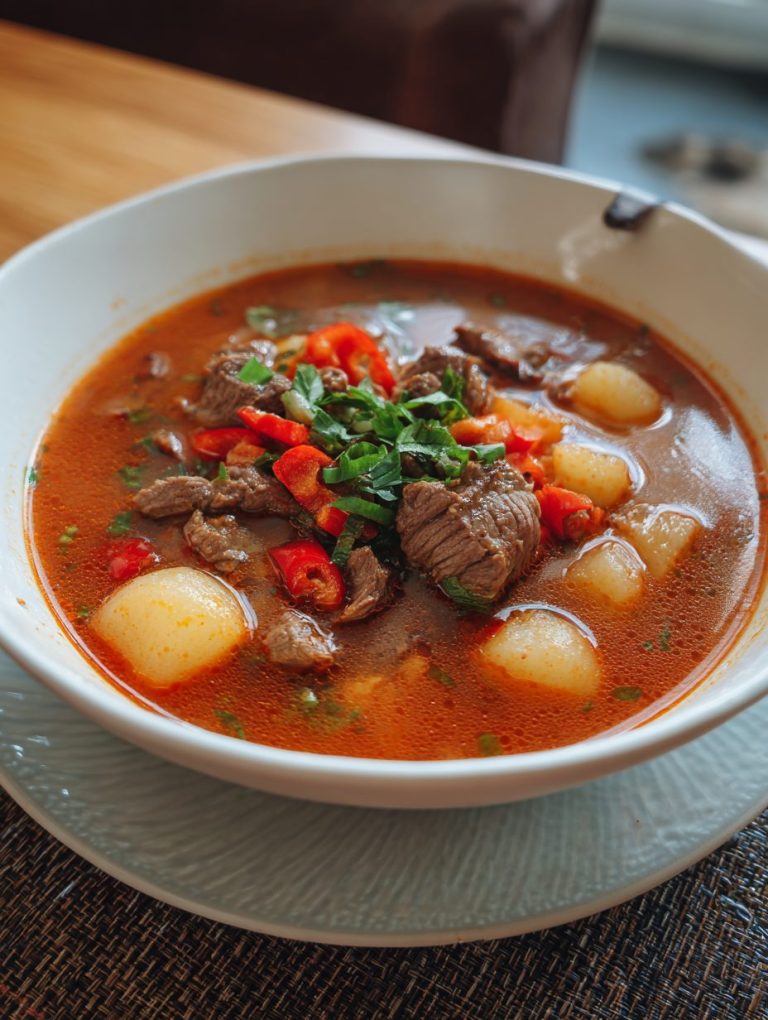 Die Rindfleisch und Kartoffelsuppe mit Paprika ist mehr als nur ein Gericht – sie ist ein Stück deutscher Kochkultur, das Generationen miteinander verbindet. Mit ihrer perfekten Balance aus herzhaften Aromen, nahrhaften Zutaten und der Wärme, die sie spendet, verdient diese Suppe einen festen Platz in jeder Küche.