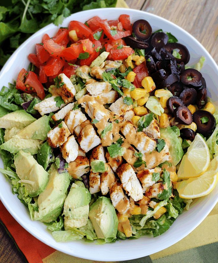 - Schritt 5: Salat zusammenstellen In einer sehr großen Salatschüssel den gehackten Römersalat als Basis verteilen. Das noch warme Hähnchen gleichmäßig darüber verteilen. Anschließend nacheinander die Kirschtomaten, Paprikawürfel, schwarze Bohnen, Mais, gewürfelte rote Zwiebel und Cheddar-Käse hinzufügen. Die Avocado als letztes hinzufügen, um ein Matschigwerden zu vermeiden.