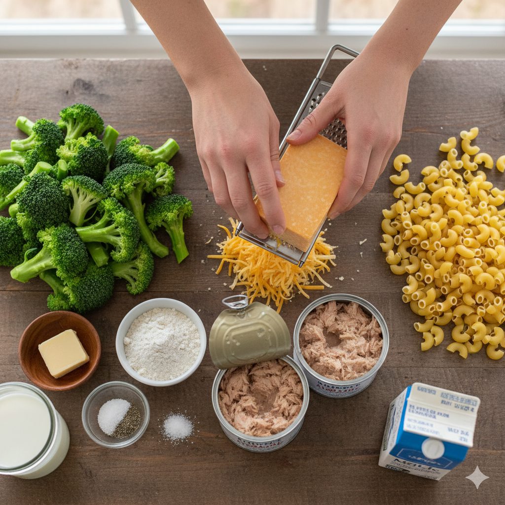 Doch unser heutiges Gericht geht einen Schritt weiter, hebt den Klassiker auf eine neue Ebene des Geschmacks und der Textur und integriert dabei sowohl eine herzhafte Proteinquelle als auch eine Portion gesundes Grün: Wir präsentieren den Einfachen Thunfisch-Makkaroni-und-Käse-Auflauf mit Brokkoli – ein Gericht, das in seiner Einfachheit überzeugt und in seiner Fülle glücklich macht.
