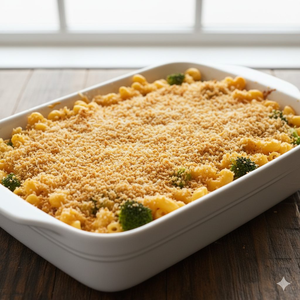 Das Finish: Die Kruste Ein Auflauf ist nur so gut wie seine Kruste. Die Kombination aus zusätzlichem geriebenem Käse und Paniermehl (alternativ zerbröselte Butterkekse oder Panko-Brotkrumen) sorgt für eine goldbraune, aromatische und knusprige Oberschicht, die einen wunderbaren Kontrast zur cremigen Füllung bildet.