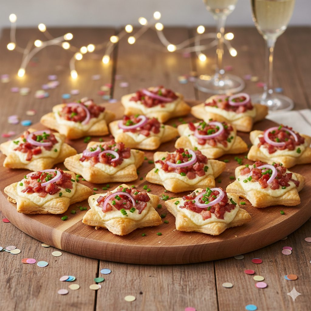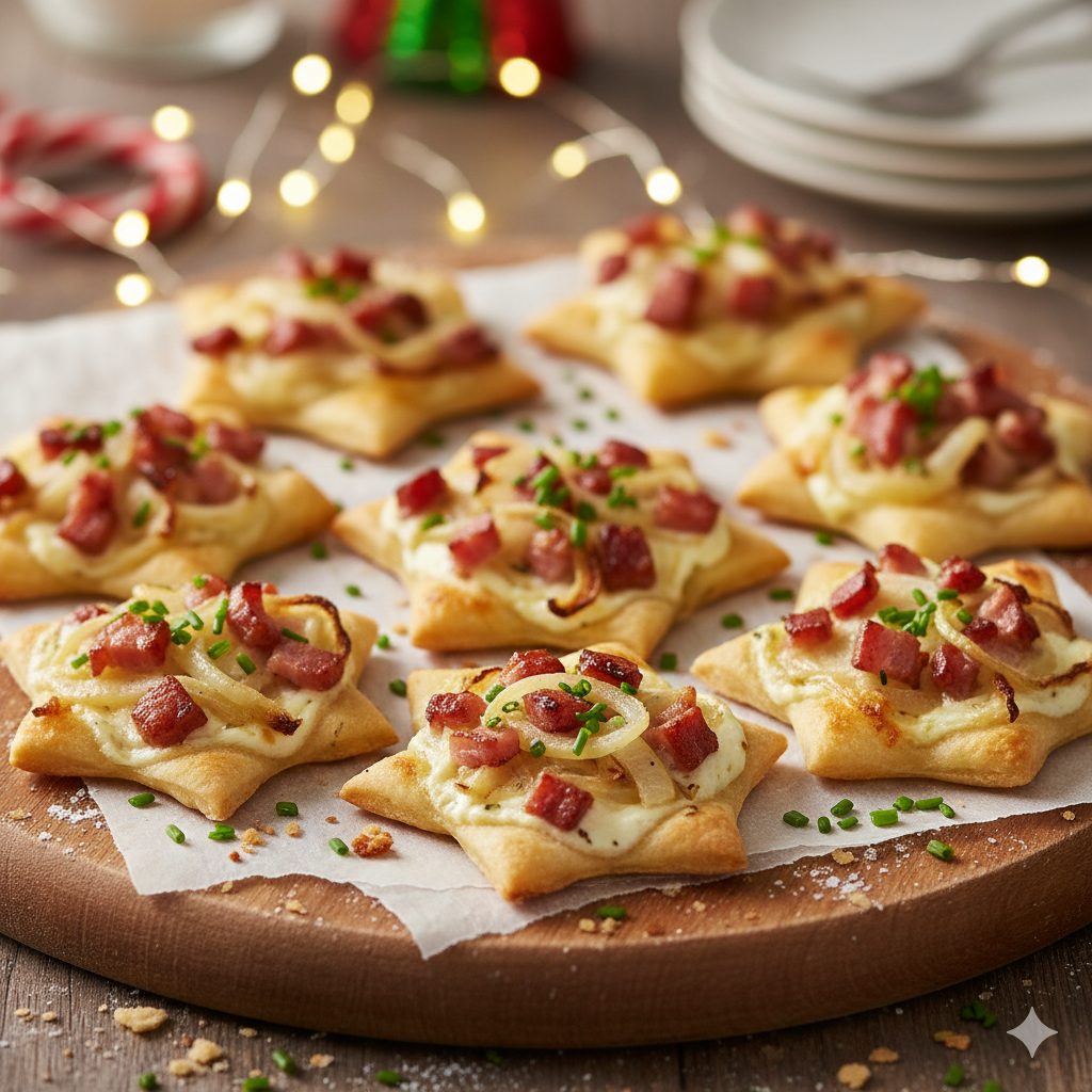 Mini Flammkuchen Sterne sind eine verspielte Variante des klassischen Flammkuchens.
